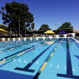 The main T-shaped pool is 33 metres long and six lanes wide, with access by step or ladder. The water depth ranges from 0.9m to 3.05m. Plenty of deck area, grassy grounds, scattered tables and chairs, shade sails and trees, ensures there is a space for everyone to share. Younger patrons can enjoy building their…